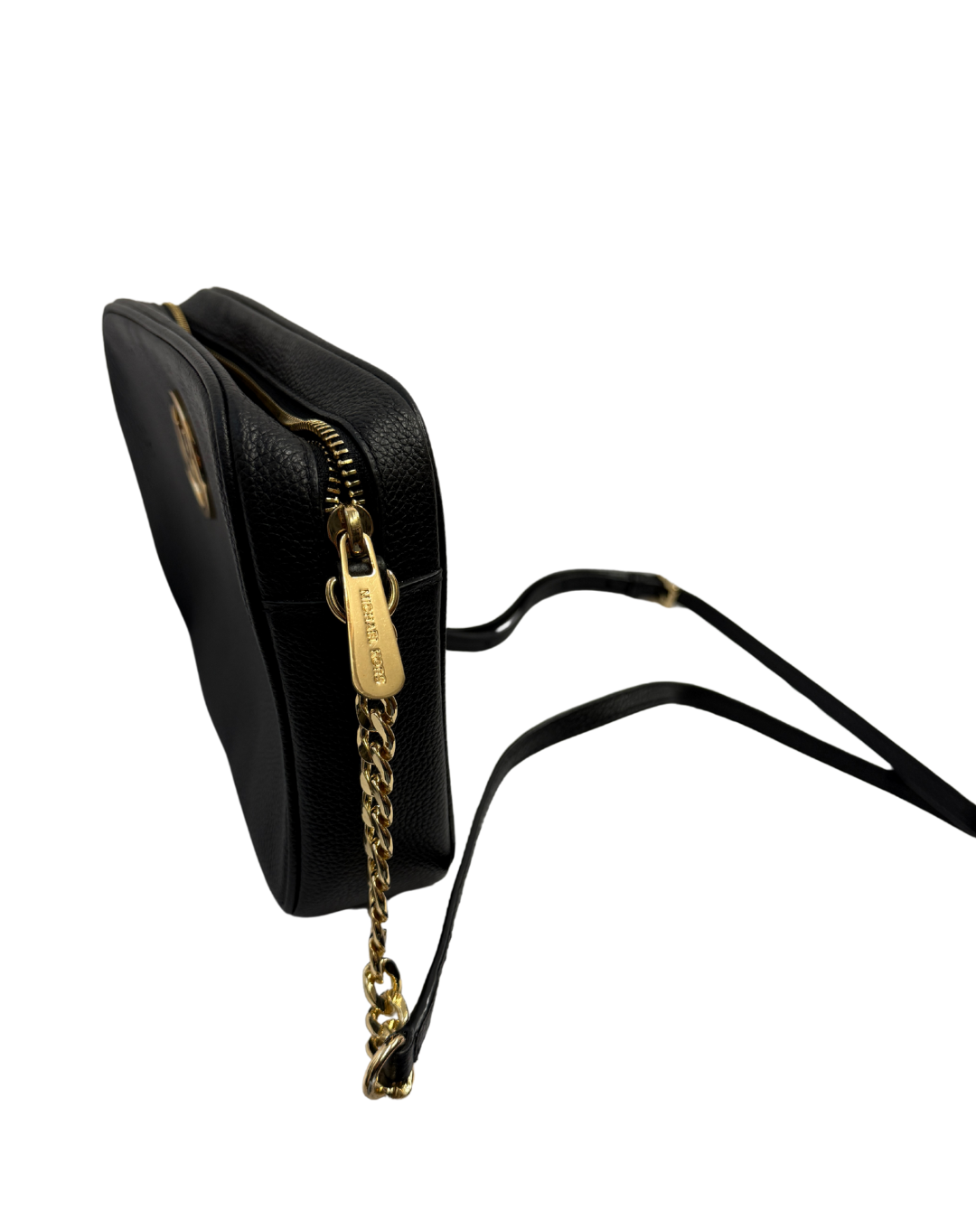 Get ready to spice up your style with the Michael Kors Medium Saffiano Leather Pochette. With sleek black leather and luxurious gold hardware, this pochette is the perfect accessory for any outfit. Step out in style and leave a lasting impression!